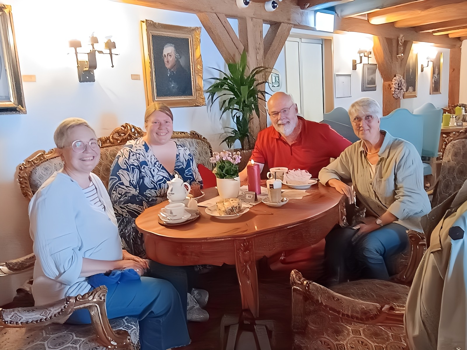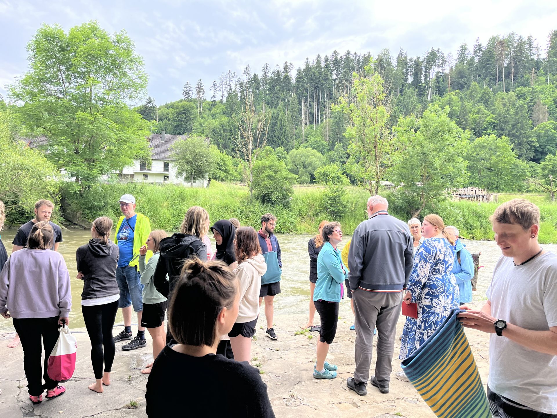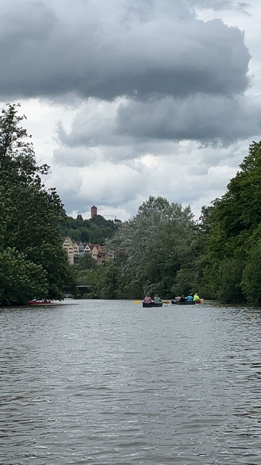 Nach der Stärkung fuhren fast alle den Neckar herunter. Vier Personen fuhren nicht mit und ließen sich es währenddessen bei Kaffee und Kuchen gut gehen.