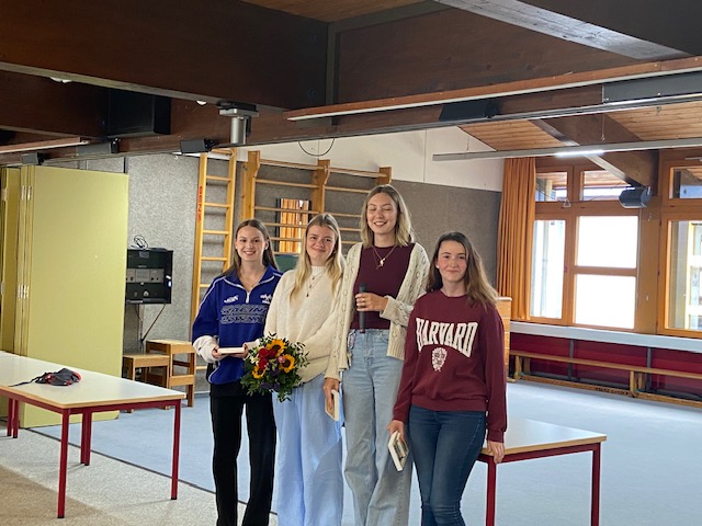 Am letzten Schultag wurden 2 Lehramtsanwärter:innen und 4 FSJ-lerinnen in einer kleinen Feierstunde in der Aula verabschiedet.